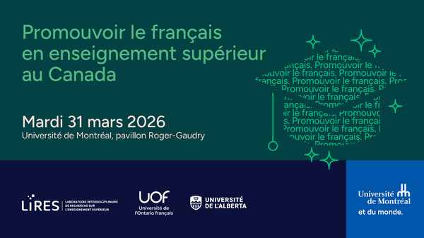 Cette journée d’étude Ce lien s'ouvrira dans une nouvelle fenêtre rassemblera des spécialistes ainsi que des étudiantes et étudiants issus de divers établissements pour discuter des voies d’action visant la promotion du français en enseignement supérieur. Elle offrira un espace d’échanges entre cadres, membres du personnel et de la communauté étudiante, autour de communications portant sur la recherche, l’enseignement et les politiques linguistiques, afin de favoriser la création d’un écosystème dynamique qui soutient la vitalité du français dans le milieu universitaire.